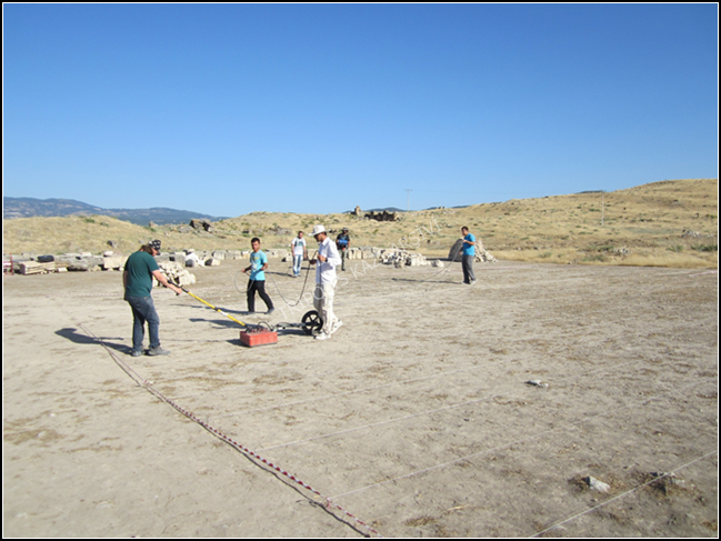 Toprak altında kalan mimari yapıları belirlemek amacıyla 4000 m2'lik alanda Jeo-radar taramaları gerçekleştirilmiştir. Bu taramalar sonucunda antik kentin ızgara plana sahip olduğu ve 60 x 45 m’lik insulalarla (parsel-ada) oluşturulduğu tespit edilmiştir
