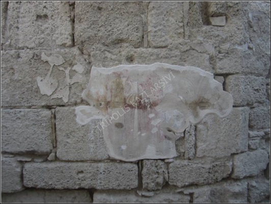 Bu alanların genel temizlikleri yapılarak sıvalar katmanları ve sıvalar ile duvar arasında kalan lakuna ve kontur aralıklarında birikmiş olan kir ve toprak temizlenerek kontur aralıkları enjeksiyon harcı ile sağlamlaştırılmıştır (Figür 6). Daha sonra sıvalı alanları tamamen içerisine alacak biçimde kontür hatları takip edilerek estetik bordür uygulaması gerçekleştirilmiştir (Figür 7). Bordür işleminin ardından sıvalı alanlar üzerinde lokal olarak bulunan dökülerek bozulmuş kısımların konservasyonunu yapmak için bu alanlarda sıvada 2 mm'lik delikler açılmış ve bu kısımlara önce su verilerek toz ve kirler temizlenmiş, ardından %5'lik primal AC-33 adlı kimyasal sıvı uygulanarak sıvaların iç kısımlarının tutuculuğu arttırılmıştır. Son olarak boşluklara malta-6001 harcı ile enjeksiyon işlemi uygulanarak duvar ile sıvalar arasındaki boşluklar doldurulmuştur.