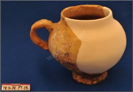 Seramik eserler üzerinde genelde, topraktaki kalsiyum karbonatın nem ile birleşmesi ile oluşan kalker tabakalanmaları tespit edilmiştir (Figür 1). Bu eserler üzerinde genelde mekanik temizleme yöntemleri kullanılmış ancak gerekli görülen durumlarda bazik özellikli çözünemeyen tuzlar üzerinde etkili olan kimyasallar da lokal olarak kontrollü bir biçimde uygulanmıştır. Kimyasal temizleyicilerin kullanıldığı durumlarda eserler saf su kullanılarak kimyasallardan arındırılmıştır. Temizleme işleminden sonra eserlerin aseton,alkol ve toluen içerisinde çözünme özelliğine sahip düşük konsantrasyonlu akroloid türevi sentetik reçineler ile konsolidasyon işlemi gerçekleştirilmiştir. Birleşen parçalar yine aynı özelliğe sahip yapıştırıcılar ile yapıştırılarak eksik kalan kısımlar alçı ile tamamlandıktan sonra eserler uygun paketleme işlemlerinin yapılmasının ardından depoya teslim edilmiştir (Figür 2).