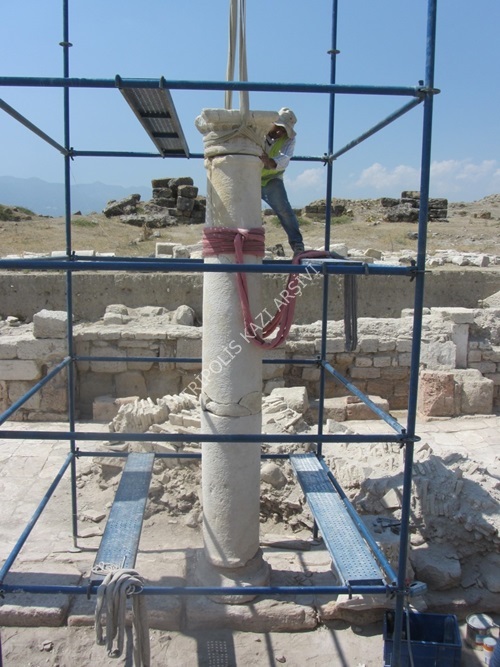 Stoa'nın doğu kenarında bulunan ve çatıyı taşıyan sütunların tamamı, herhangi bir müdahale yapılmadan fotoğraflanıp belgelenmiştir. Sütunlar çalışmanın ilerleyen aşamalarında öncelikli olarak prova amaçlı ayağa kaldırılmış ardından projeye uygun olarak restorasyon işlemleri tamamlanmıştır (Figür 1).
