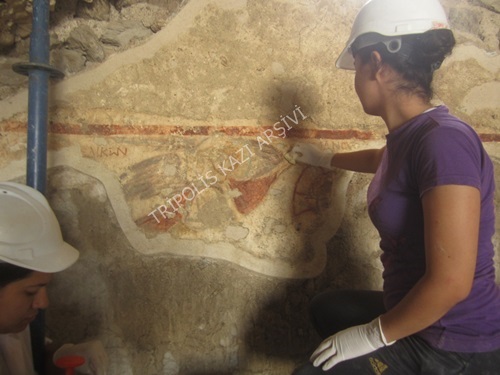 Yapının doğu duvarında bulunan freskin yüzeyi, bordür yapılacak olan