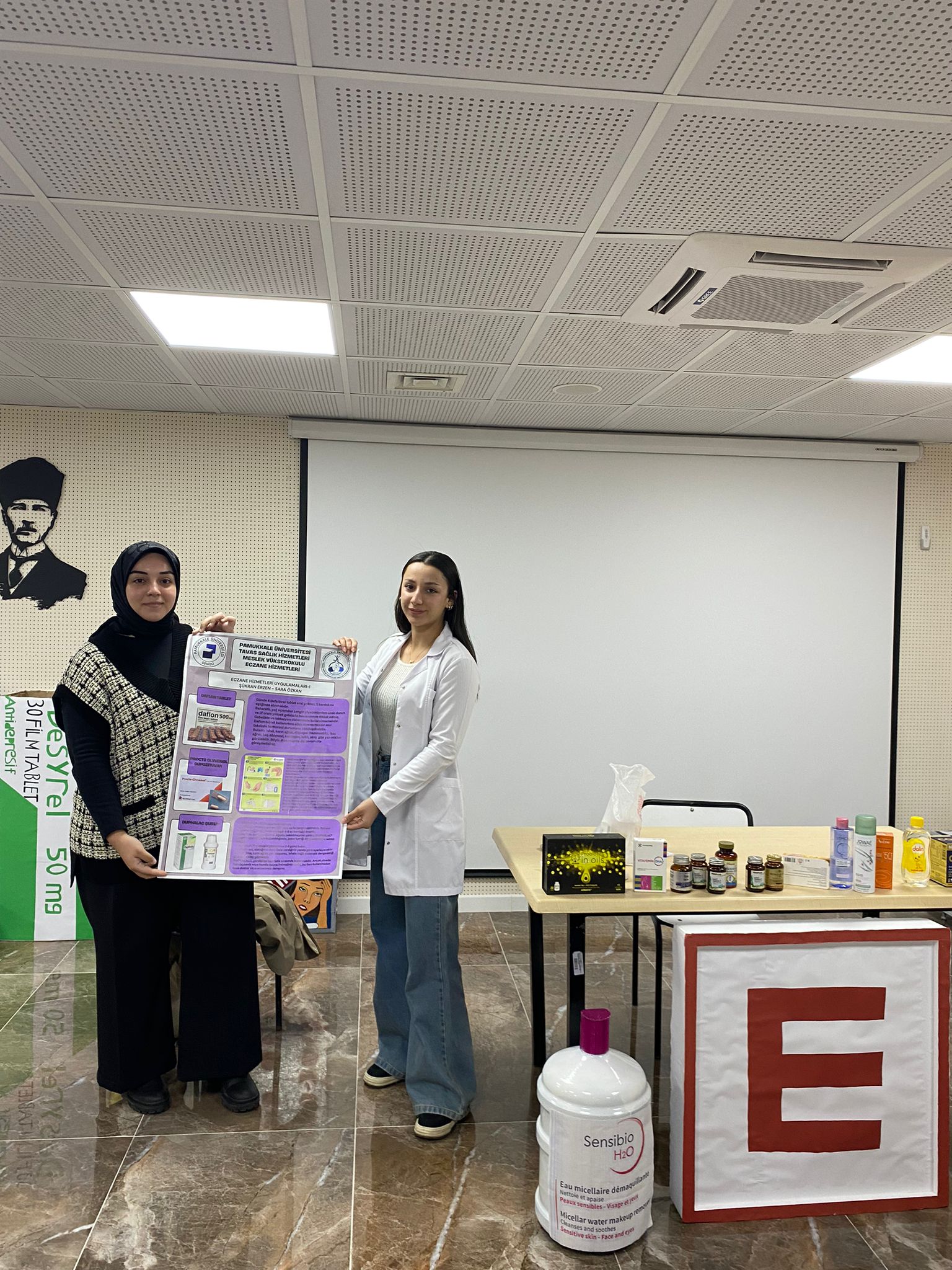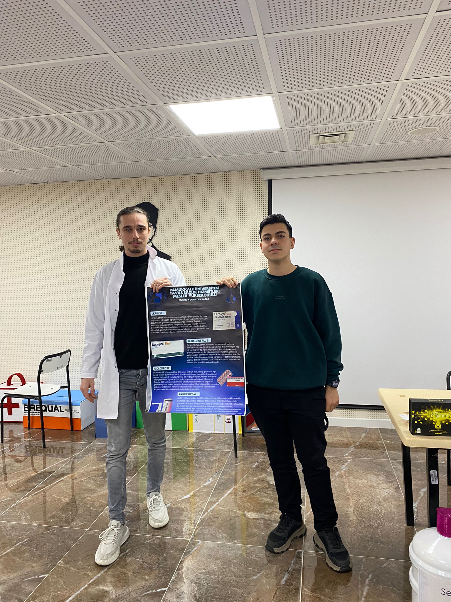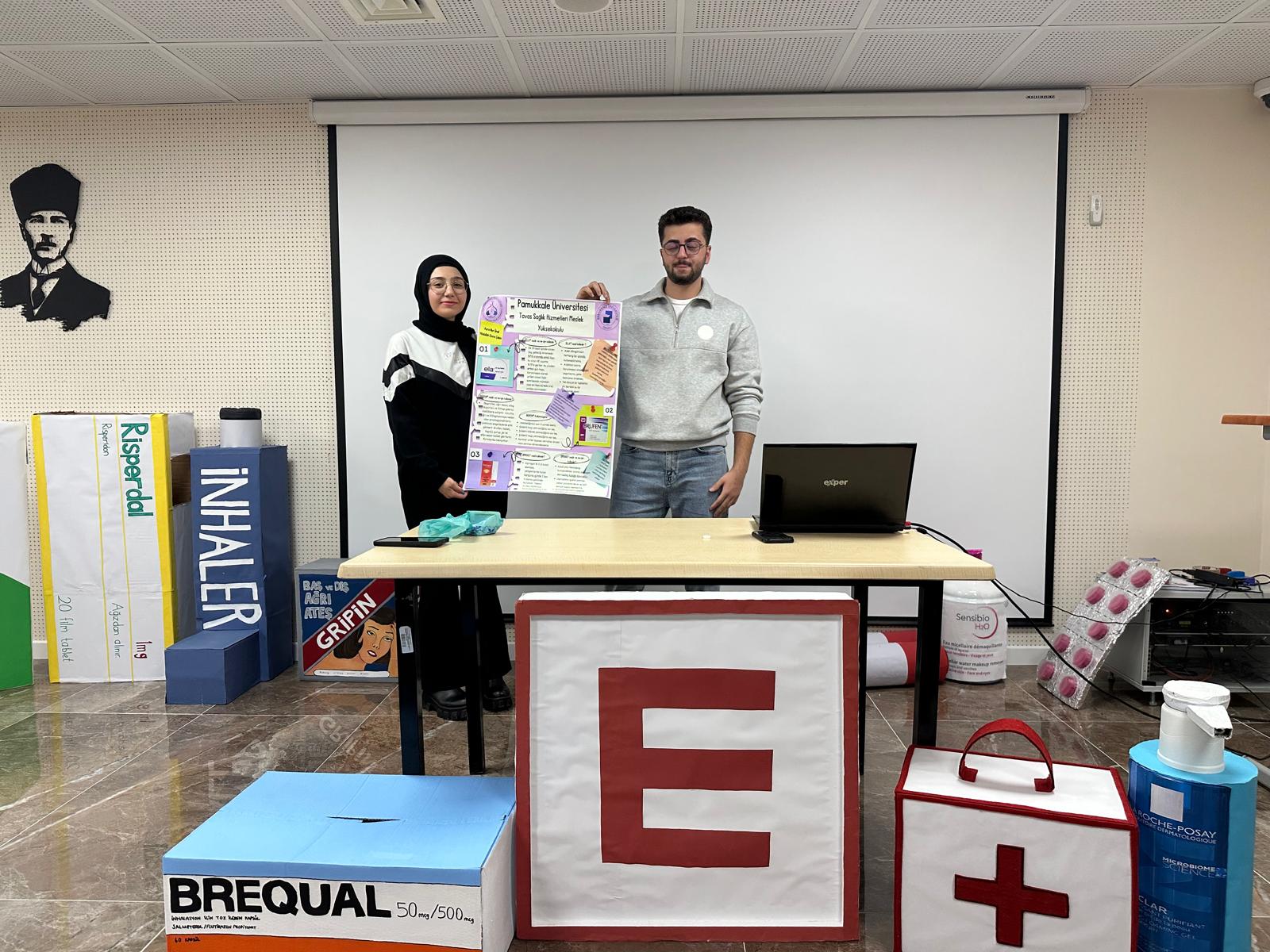 Eczane Hizmetleri Uygulamları 1 dersi kapsamında yaptığımız PDÖ uygulamamız Eğitim 15 Ocak 2025 - 07 Temmuz 2028 Tavas MYO Konferans Salonu Öğrencilerimiz verilen reçetedeki ilaçların farmsötik bakımlarını arkadaşlarına sundular.