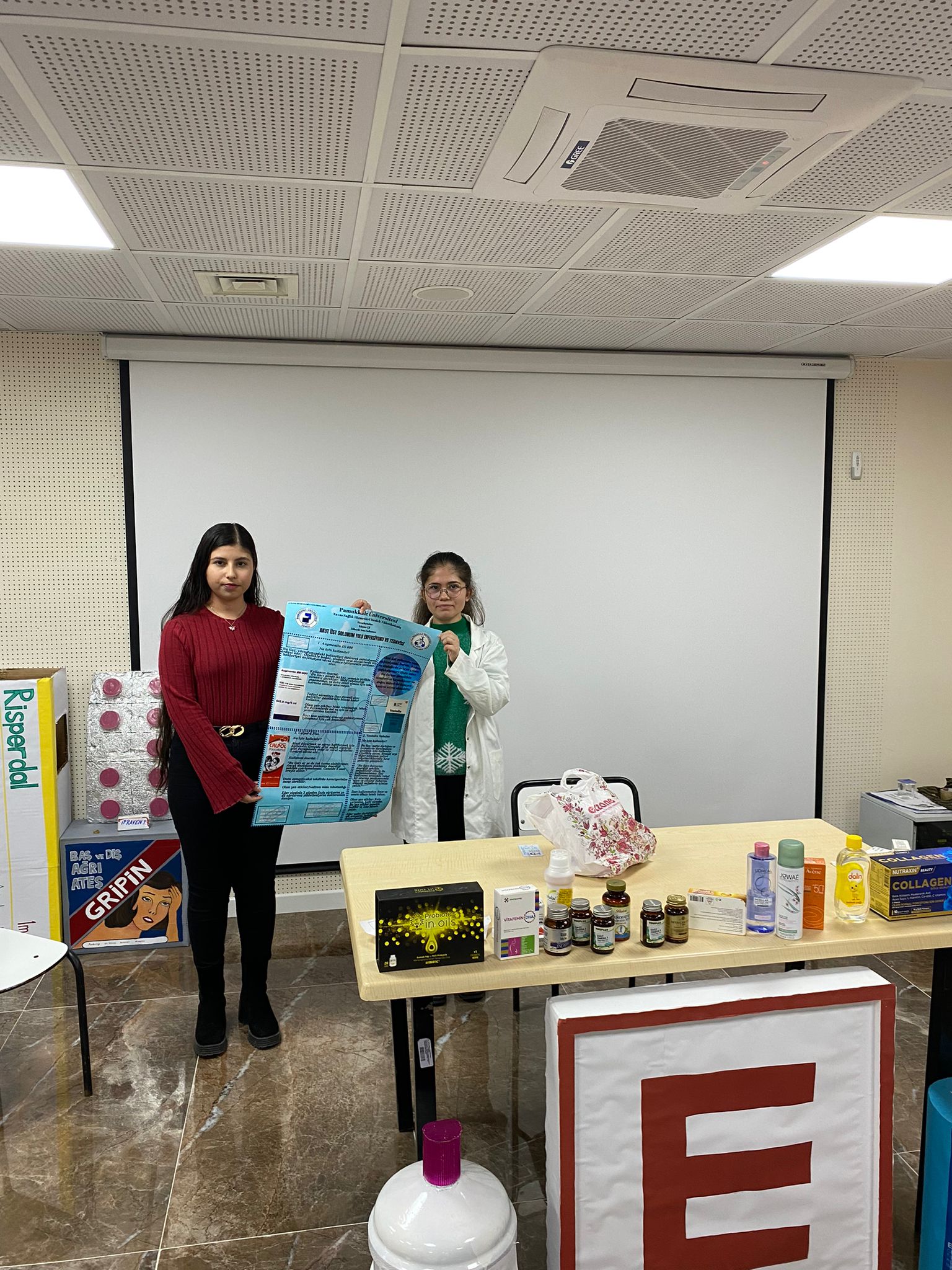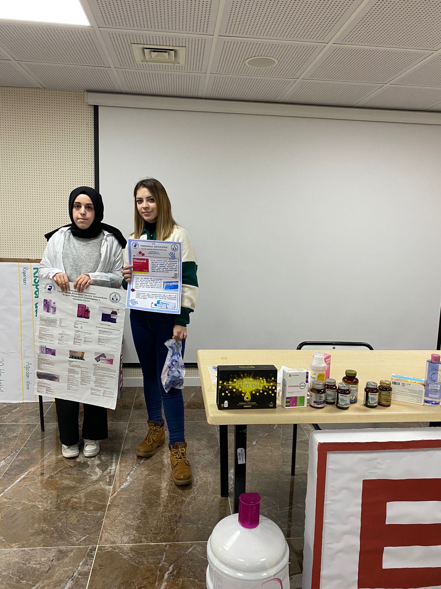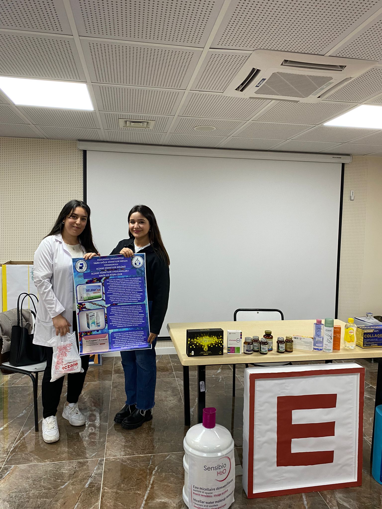 Eczane Hizmetleri Uygulamları 1 dersi kapsamında yaptığımız PDÖ uygulamamız Eğitim 15 Ocak 2025 - 07 Temmuz 2028 Tavas MYO Konferans Salonu Öğrencilerimiz verilen reçetedeki ilaçların farmsötik bakımlarını arkadaşlarına sundular.