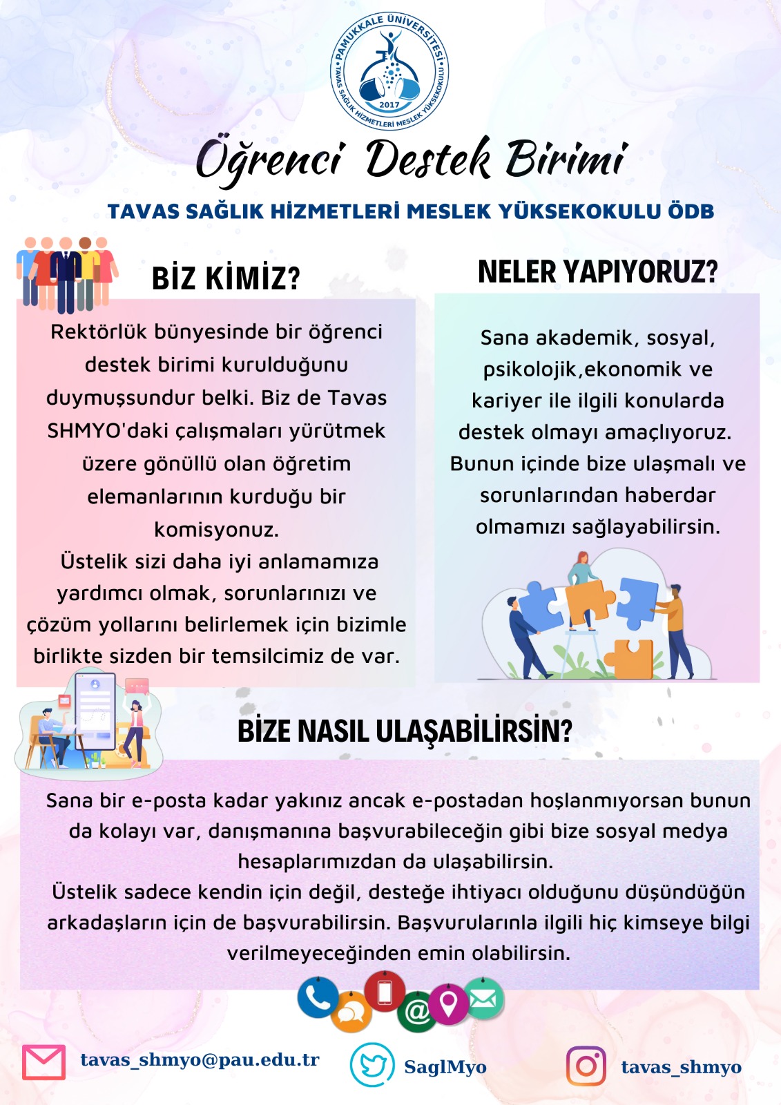 Tavas Sağlık Hizmetleri Meslek Yüksekokulu Öğrendi Destek Birimi İletişim: tshmyodb@pua.edu.tr