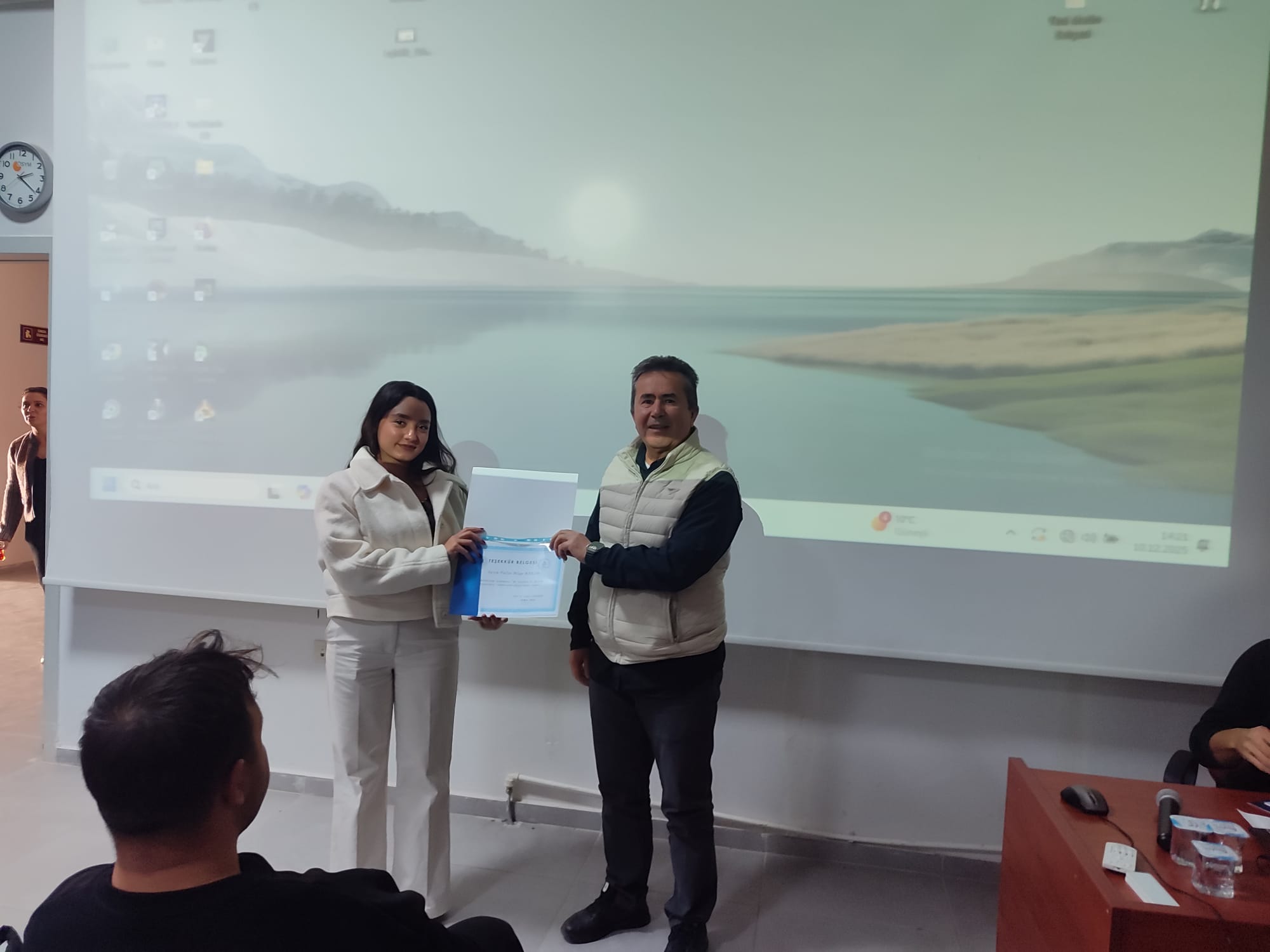 10 Aralık 2025 Tarihinde Fakültemiz konferans salonunda mezunlarımızla öğrencilerimiz bir araya geldi. Mezunlarımız öğrencilerimize eğitim süreçlerini, mezuniyetten sonra iş planlama deneyimlerini, akademik kariyer yapma tecrübelerini, meslek yaşamı içerisinde karşılaştıkları sorunlar ve çözümleri hakkında bilgi aktarımı yaptı. Etkinlik soru-cevap bölümünün ardından konuşmacılara teşekkür belgesi takdim edilmesi ve hatıra fotoğrafı çekilmesiyle son buldu.