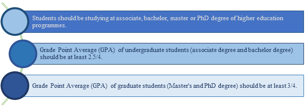 Mevlana project is an exchange programme for students and academic and administrative staffs of Higher Education Institutions (HEI) of Turkey and other countries. Mevlana Exchange Programme involves HEI’s all over the world without geographical discrimination and allows students and staffs, who are enrolled in a HEI, to gain international experience. Students can study abroad for a single term or maximum of two terms. On the other hand, staffs can lecture abroad for minimum of one week and maximum of three months. Students who are enrolled to distance education or non-formal education cannot get benefit from Mevlana exchange programme.