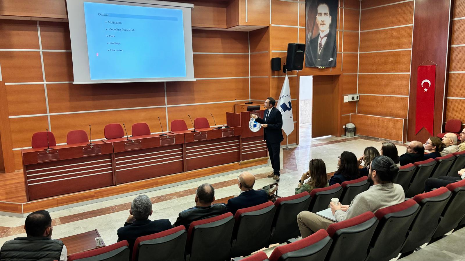 6 Kasım 2025 Perşembe günü Şehit Piyade Teğmen Bekir Can Kerek Konferans Salonu'nda düzenlenen seminerin konuşmacısı, Uluslararası Ticaret ve Finansman Bölümü öğretim üyesi Prof. Dr. Şaban NAZLIOĞLU oldu.
