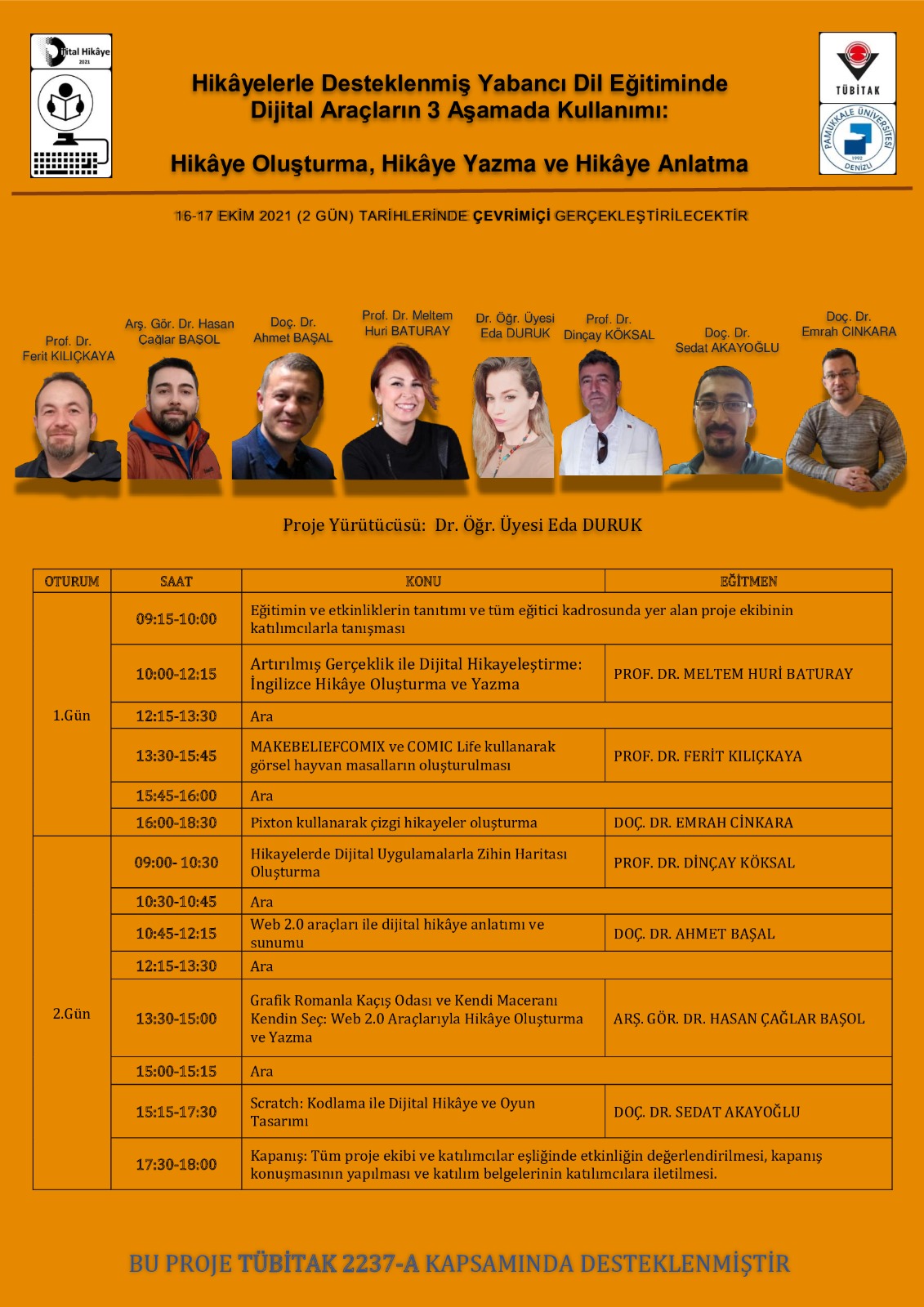 Department of Education Our Faculty Member Dr. Lecturer Eda Duruk is the Executive Director of the TUBITAK-Supported Project “The Use of Digital Tools in Foreign Language Education Supported by Stories in 3 Stages: Creating a Story, Writing a Story and Telling a Story”.   The poster related to the project is presented below.