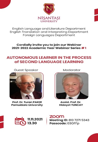Bölüm Başkanımız Prof. Dr. Turan PAKER,  Nişsantaşı Üniversitesi'nde  "Autonomous Learner in the Process of Second Language Learning"  konulu bir webinar vermiştir.