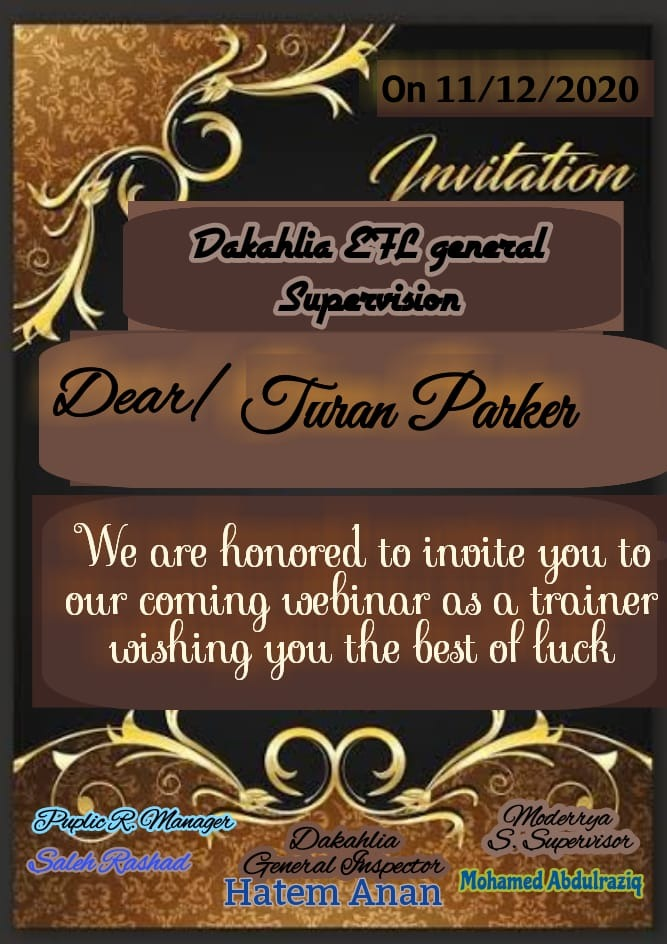 Bölüm Başkanımız Prof. Dr. Turan PAKER Mısır Dakahlia'dan gelen davetle "Teaching and Assessment of  the Four Language Skills Communicatively" konulu bir webinar vermiştir.  Etkinlik videosuna aşağıdaki linkten ulaşabilirsiniz: