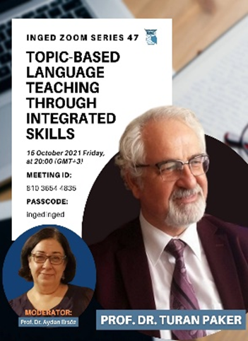 Bölüm Başkanımız Prof. Dr. Turan PAKER,  İngilizce Eğitim Derneği'nde  (INGED)   "Topic-Based Language Teaching"  konulu bir webinar vermiştir.  Etkinlik videosuna aşağıdaki linkten ulaşabilirsiniz: