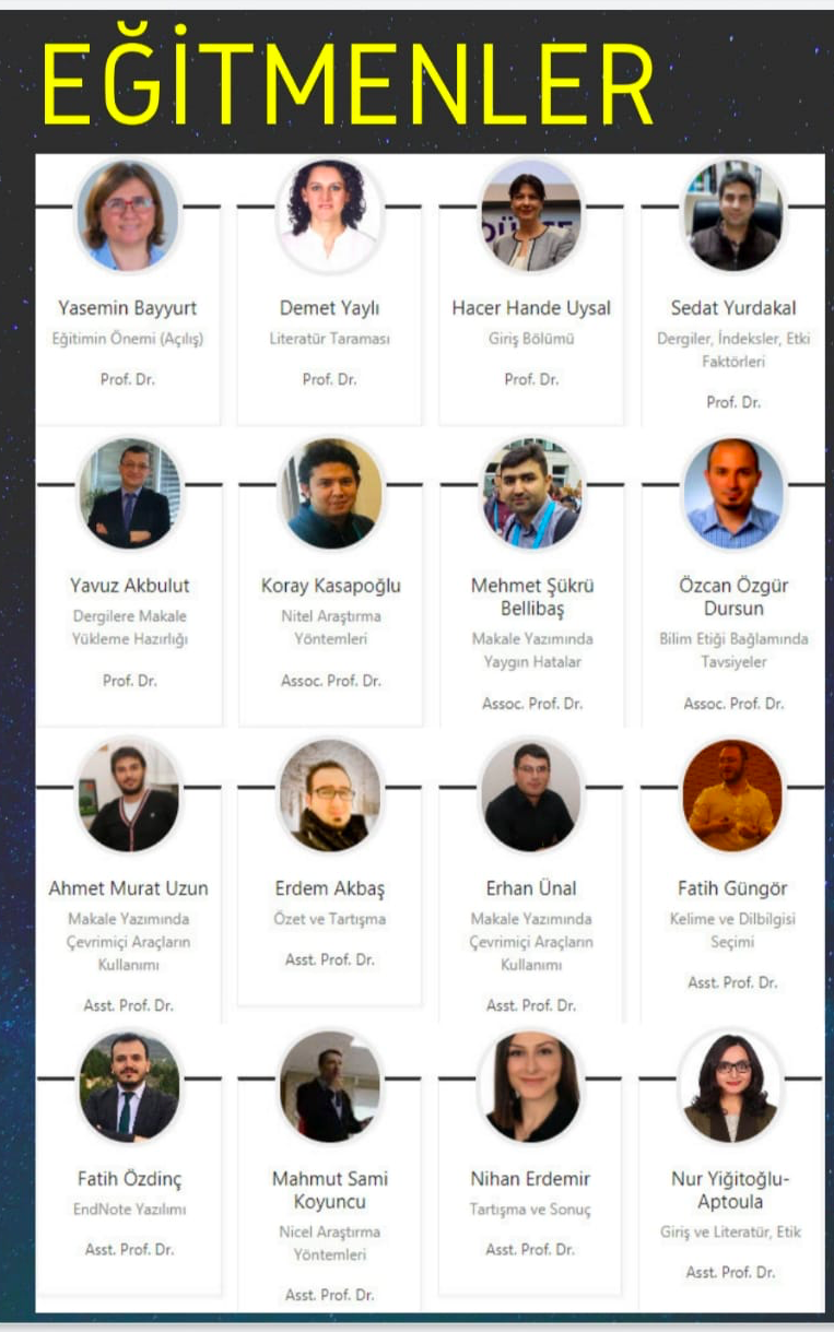 Anabilim Dalı Öğretim Üyemiz Prof. Dr. Demet YAYLI Eğitim Bilimleri Alanındaki Lisansüstü Öğrencilere İngilizce Bilimsel Makale Yazım ve Yayımlama Kursu isimli 2237-A Tübitak Projesinde Eğitmen olarak yer almıştır. Proje ile ilgili afiş fotoğrafları aşağıda sunulmuştur.