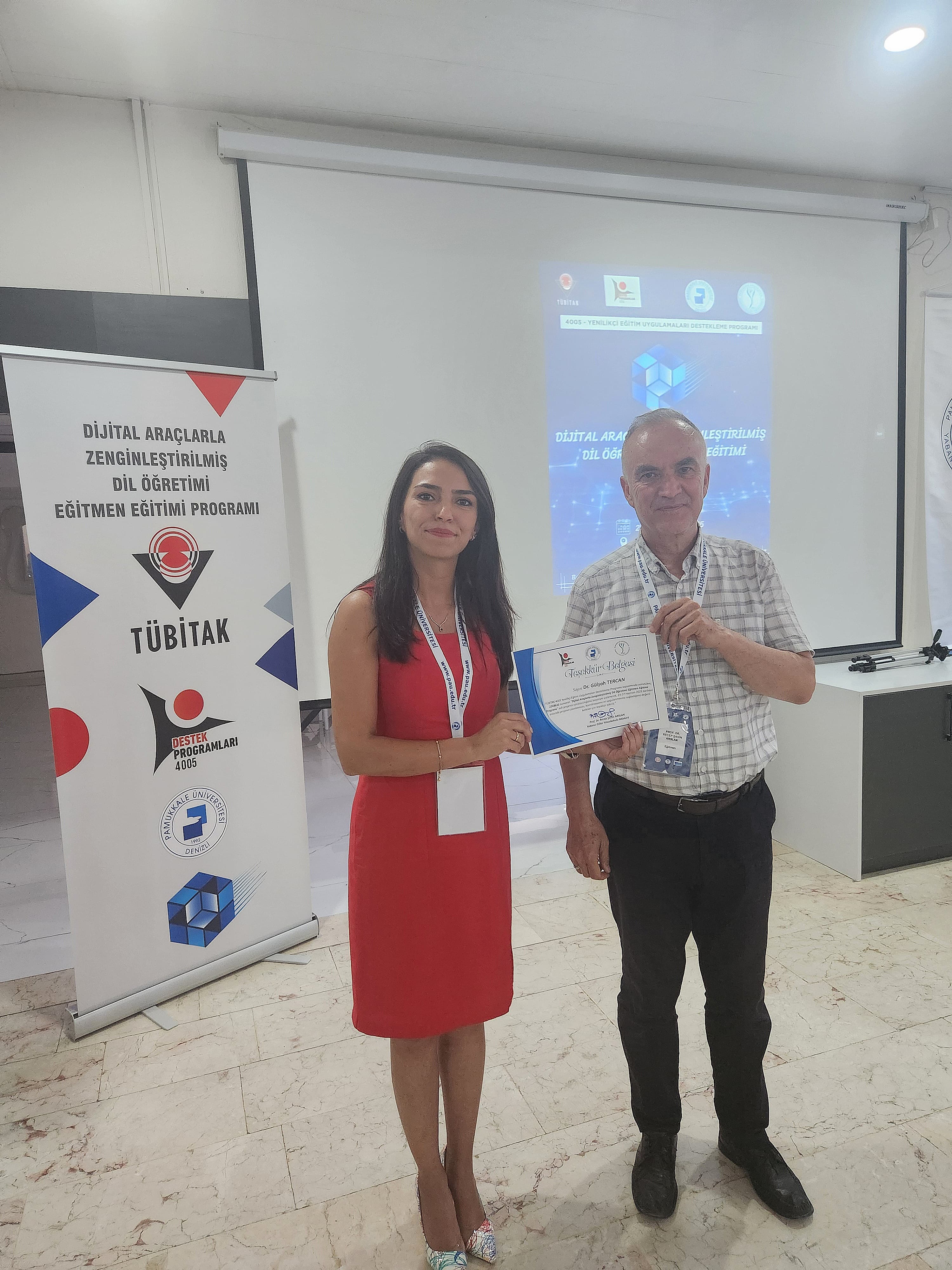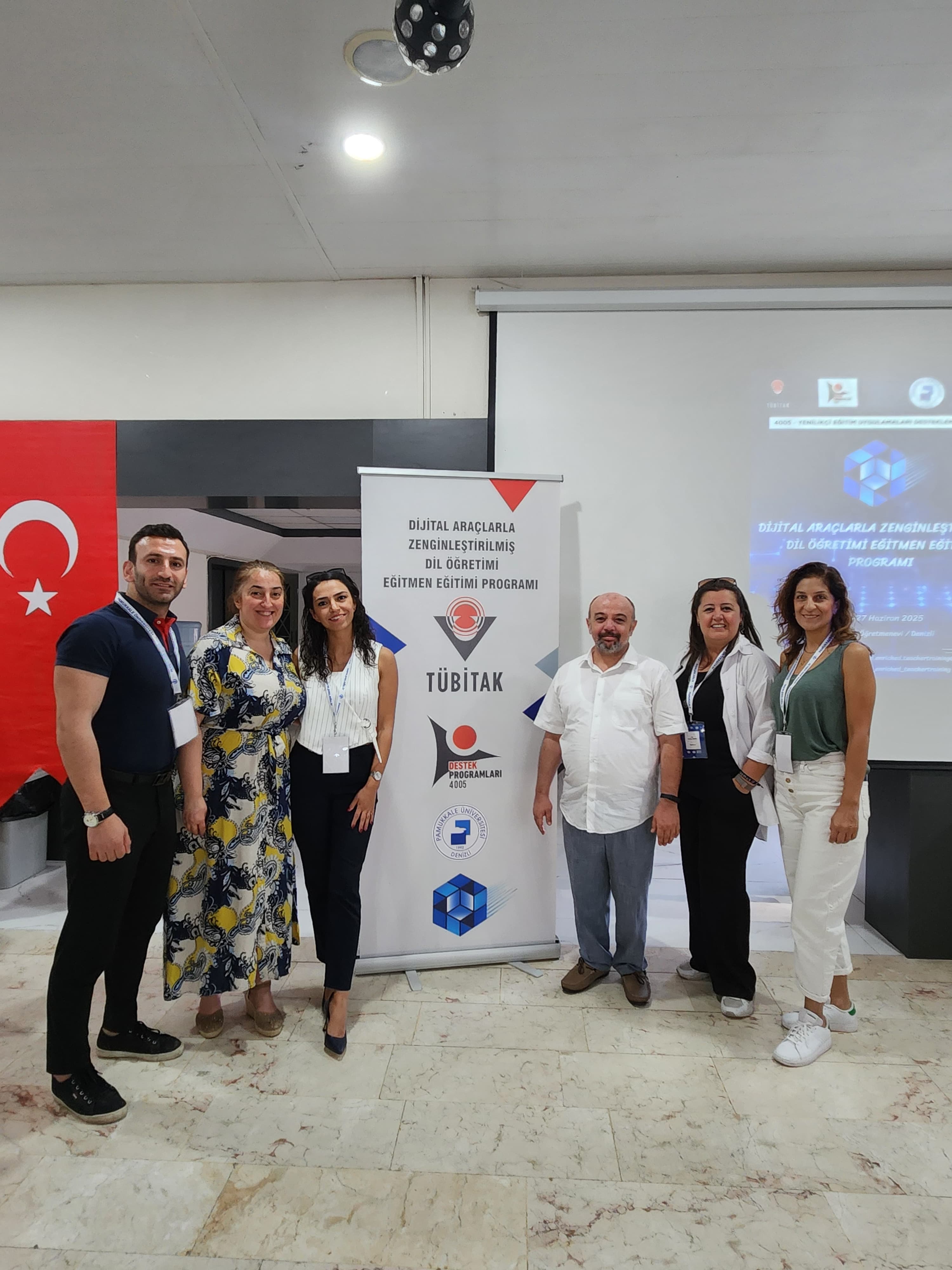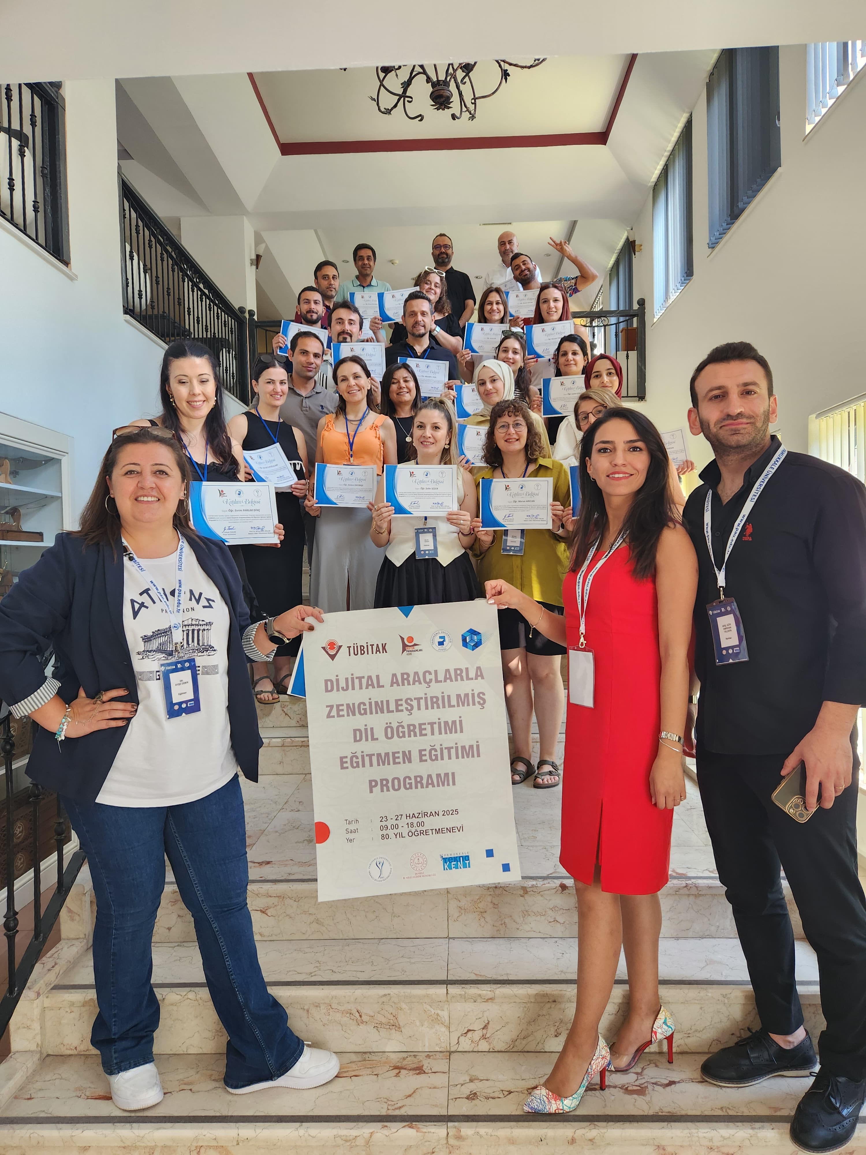 TÜBİTAK 4005 Yenilikçi Eğitim Uygulamaları Destekleme Programı kapsamında desteklenen ve proje yürütücülüğünü Dr. Gülşah TERCAN'ın üstlendiği "Dijital Araçlarla Zenginleştirilmiş Dil Öğretimi Eğitmen Eğitimi Programı" adlı beş günlük eğitim, Denizli 80. Yıl Öğretmenevi ve Sosyal Tesisleri'nde 23-27 Haziran 2025 tarihleri arasında uygulandı. Dr. Ayşe Demir'in eğitim koordinatörlüğünde gerçekleşen projeye, Prof. Dr. Serdar İPLİKÇİ ve Dr. Özlem AKYOL uzman olarak; Prof Dr. Recep Şahin Erarslan, Prof Dr. Turan Paker, Doç. Dr. Ali Erarslan, Dr. Öğr. Üyesi İbrahim DORUK, Dr. Öğr. Üyesi Hurşit Cem SALAR, Dr. Billur YILDIRIM eğitmen olarak; Arş. Gör. Emirhan YELEKİN rehber, Hemşire Zerrin DURDU sağlık personeli ve Öğretim Görevlisi Tuncay KARAÇAY profesyonel tur rehberi olarak katkıda bulundu. Denizli İl Milli Eğitim Müdürülüğü ve PAÜ Teknokentin desteklediği proje katılımcılardan tam not aldı.