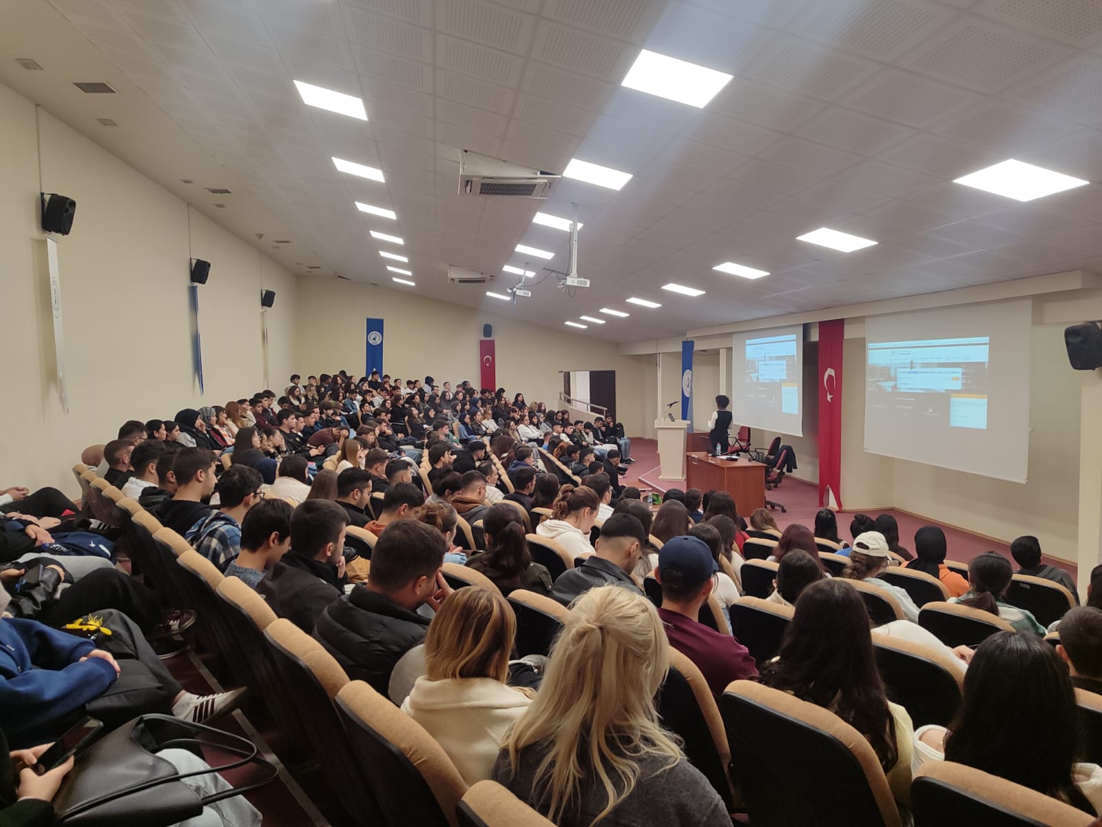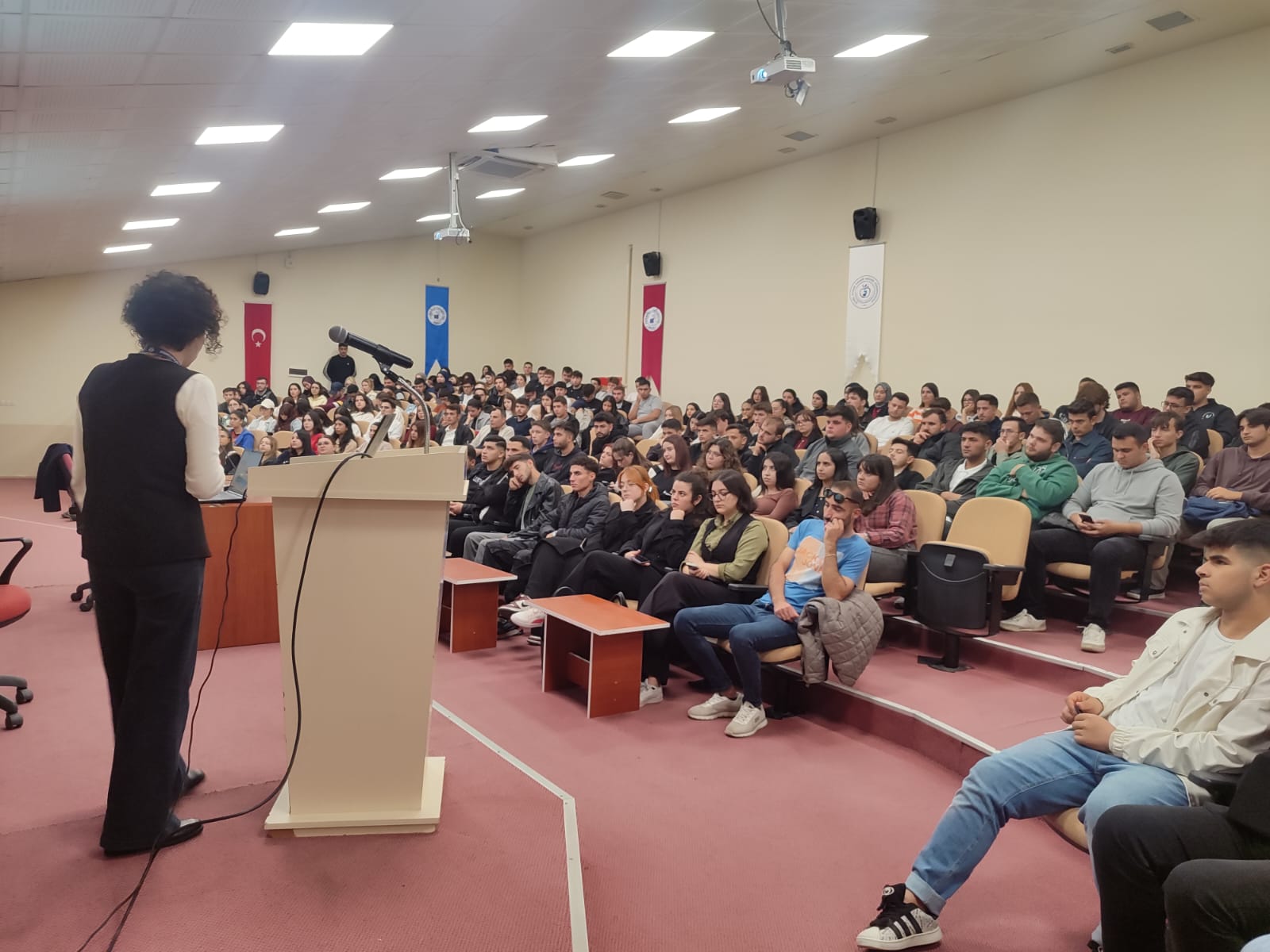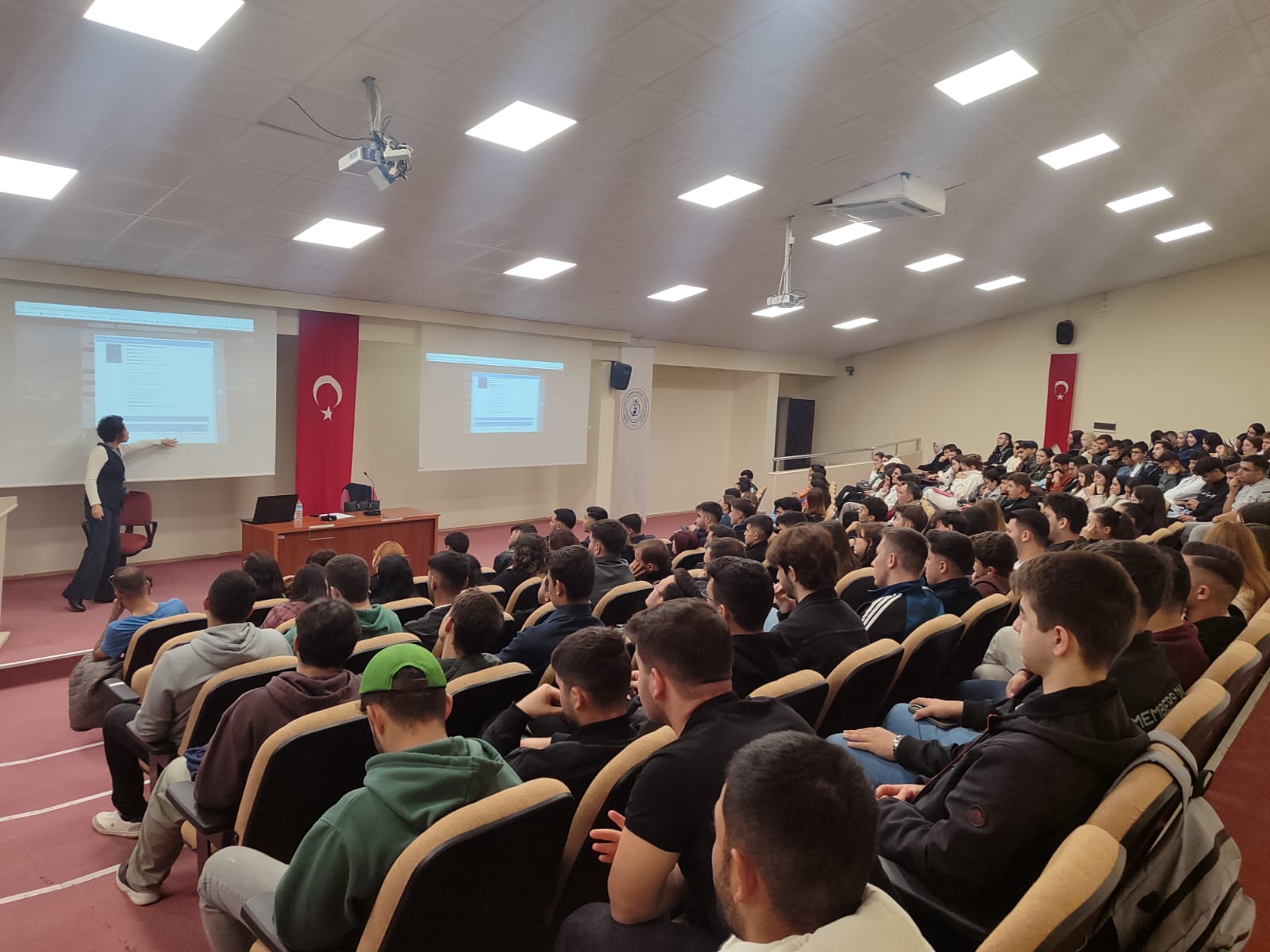 Dijital Kütüphane Kullanım Eğitimi Gerçekleştirildi Güncellenme Tarihi: 23 Ekim 2025 Pamukkale Üniversitesi merkez kütüphanesinin sunduğu imkanlardan azami düzeyde faydalanılmasını hedefleyen bilgilendirme toplantısı, 21 Ekim 2025 Salı günü Öğretim Görevlisi Ümran KANDEMİR'in sunumuyla konferans salonunda gerçekleştirildi. Akademik ve idari personelin yanı sıra salonun tamamını dolduran öğrencilerin yoğun katılımıyla gerçekleşen eğitimde, KANDEMİR, Pamukkale Üniversitesi Kütüphanesi kaynaklarına nasıl daha etkili ve verimli bir şekilde erişileceği ve bu kaynakların nasıl kullanılacağı üzerine detaylı bir sunum yaptı. KANDEMİR'in verdiği bilgilere göre öğrenciler, kütüphaneden yalnızca basılı eserlere değil, aynı zamanda online olarak erişilebilen binlerce kaynağa ulaşabiliyor. Sunumda özellikle üniversitenin anlaşmalı olduğu zengin veri tabanları, bu veri tabanlarına erişim yöntemleri ve elektronik ile basılı kitap tarama işlemleri adım adım anlatıldı. Katılımcılar, kataloglama sisteminden etkili kitap arama stratejilerine ve diğer bilimsel kaynaklara erişime kadar pek çok konuda değerli bilgiler edinme fırsatı buldu.