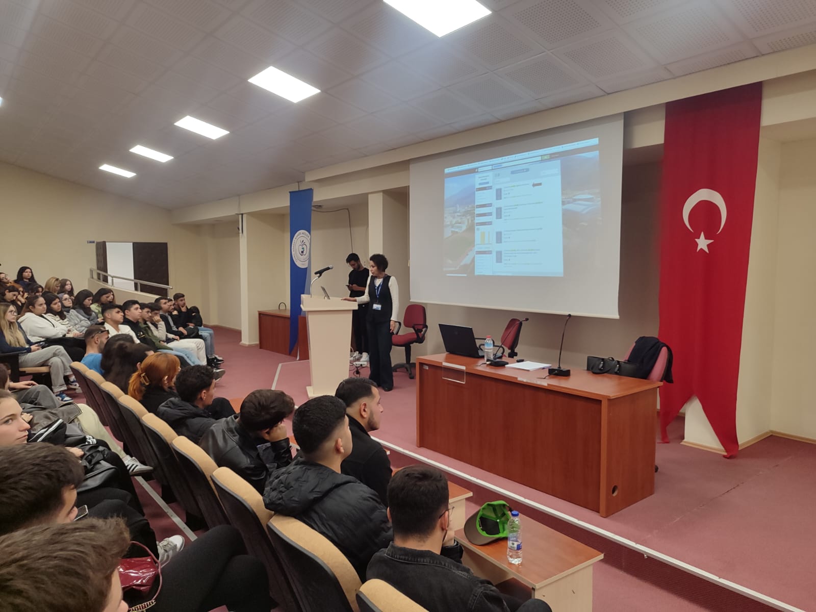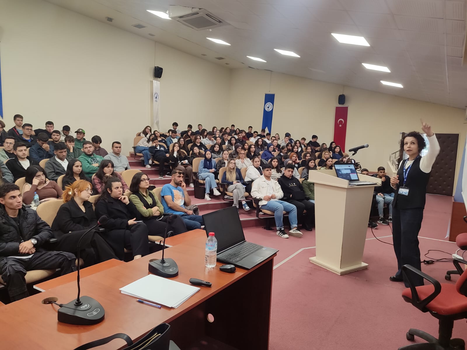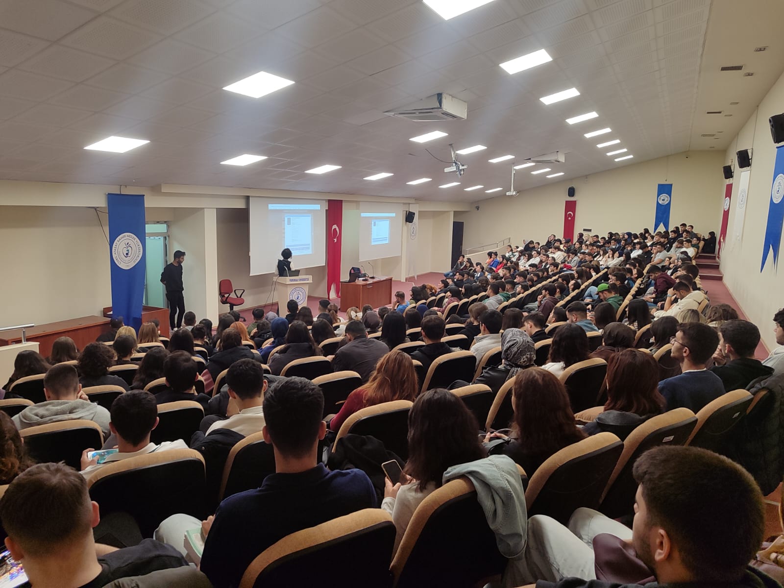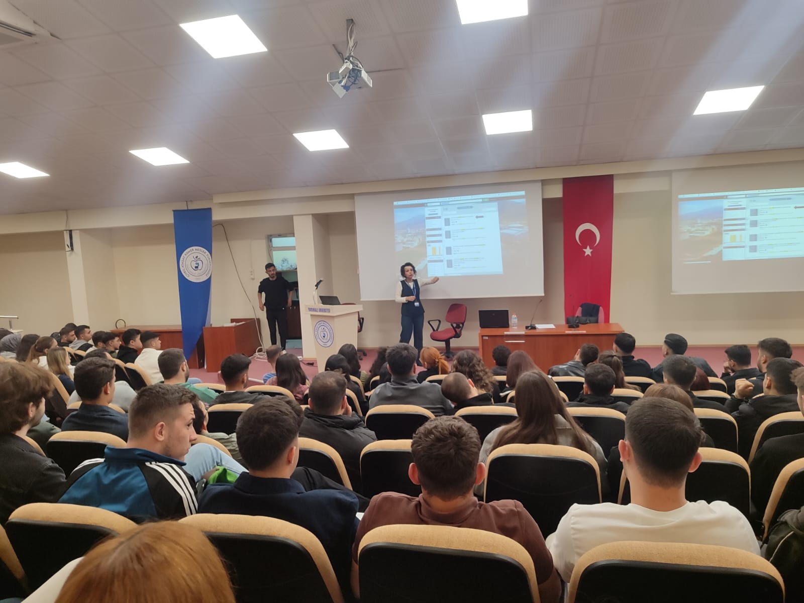 Dijital Kütüphane Kullanım Eğitimi Gerçekleştirildi Güncellenme Tarihi: 23 Ekim 2025 Pamukkale Üniversitesi merkez kütüphanesinin sunduğu imkanlardan azami düzeyde faydalanılmasını hedefleyen bilgilendirme toplantısı, 21 Ekim 2025 Salı günü Öğretim Görevlisi Ümran KANDEMİR'in sunumuyla konferans salonunda gerçekleştirildi. Akademik ve idari personelin yanı sıra salonun tamamını dolduran öğrencilerin yoğun katılımıyla gerçekleşen eğitimde, KANDEMİR, Pamukkale Üniversitesi Kütüphanesi kaynaklarına nasıl daha etkili ve verimli bir şekilde erişileceği ve bu kaynakların nasıl kullanılacağı üzerine detaylı bir sunum yaptı. KANDEMİR'in verdiği bilgilere göre öğrenciler, kütüphaneden yalnızca basılı eserlere değil, aynı zamanda online olarak erişilebilen binlerce kaynağa ulaşabiliyor. Sunumda özellikle üniversitenin anlaşmalı olduğu zengin veri tabanları, bu veri tabanlarına erişim yöntemleri ve elektronik ile basılı kitap tarama işlemleri adım adım anlatıldı. Katılımcılar, kataloglama sisteminden etkili kitap arama stratejilerine ve diğer bilimsel kaynaklara erişime kadar pek çok konuda değerli bilgiler edinme fırsatı buldu.