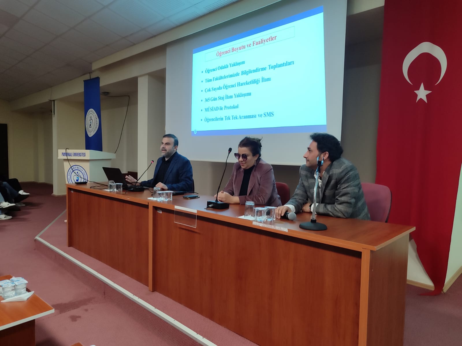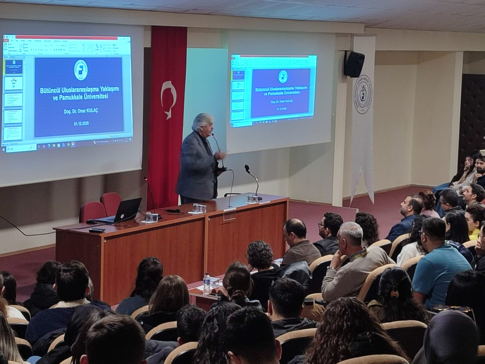 PAÜ'de "Dünyaya Açılan Kapı: Erasmus+ ve PAÜ’nün Uluslararası Yolculuğu" Semineri Güncellenme Tarihi: 05 Aralık 2025 Pamukkale Üniversitesi'nde (PAÜ) uluslararası değişim programlarının önemini ve başvuru süreçlerini anlatmak amacıyla "Dünyaya Açılan Kapı: Erasmus+ ve PAÜ’nün Uluslararası Yolculuğu" başlıklı bir seminer düzenlendi. PAÜ Ziraat Fakültesi ev sahipliğinde gerçekleştirilen etkinliğe Ziraat Fakültesi öğrencileri, akademik ve idari personeli yoğun ilgi gösterdi. Uluslararası Başarılar Vurgulandı Seminerin açılış konuşmasını gerçekleştiren PAÜ Ziraat Fakültesi Dekanı Prof. Dr. Turan Karadeniz, uluslararasılaşmanın üniversiteler ve öğrenciler için sunduğu fırsatlara dikkat çekerek misafirlere "hoş geldiniz" dedi. Ardından söz alan Rektör Danışmanı Doç. Dr. Onur Kulaç, PAÜ Uluslararası İlişkiler Koordinatörü Dr. Öğr. Üyesi Yaşam Demir ve Birim Sorumlusu İsmail Balandız, PAÜ’nün Erasmus+ programları kapsamındaki güncel başarılarını ve uluslararası alandaki yolculuğunu detaylı bir şekilde aktardılar. Öğrencilerin büyük bir merakla takip ettiği programda, değişim programlarının akademik ve kişisel gelişime katkıları, başvuru süreçleri, şartları ve yapılması gerekenler konularında kapsamlı bilgiler verildi. Katılımcıların soruları yanıtlanarak programlara katılım teşvik edildi. Etkinlik, öğrencilerin akademik kariyerlerini uluslararası bir boyuta taşıma hedeflerine rehberlik etme açısından verimli geçti.